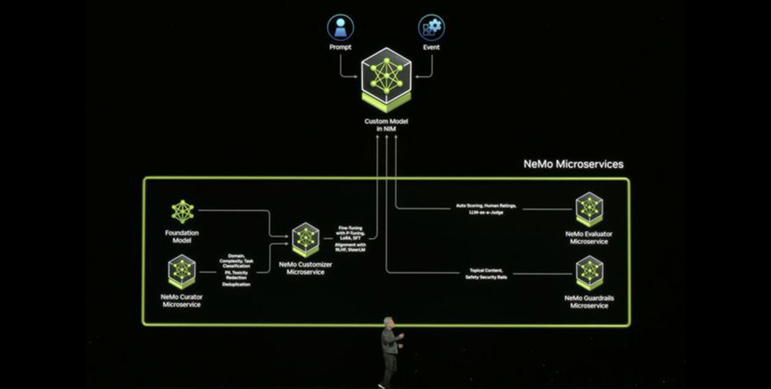 此次大会发布了集成AI开发软件微服务系统NIM(NVIDA INFERENCE MICROSERVICE),可以让缺乏AI开发经验的传统行业通过在 NVIDIA 的安装基础上运行经过打包和优化的预训练模型。同时它也可以广泛应用于医疗保健行业,医疗机构可以基于该平台服务,筛选数万亿种药物化合物帮助研制新药,收集患者数据帮助早期疾病筛查与预测等。