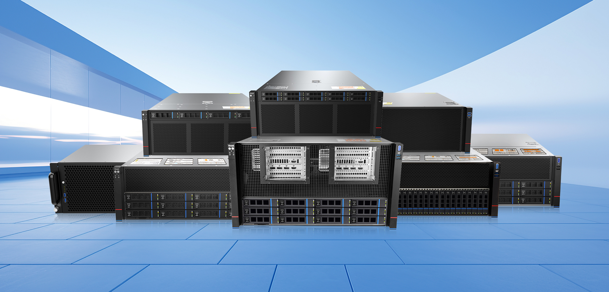 活动现场,Gooxi集中展示了十余款行业首发产品,亮点纷呈。其中,基于AMD全新Turin 平台开发的6U8卡和4U8卡两款人工智能服务器,凭借其强大的性能,吸引了众多与会者的目光;基于Intel Eagle Stream平台开发的8U8卡、6U8卡和4U8卡三款人工智能服务器同样表现卓越。8U8卡机在硬件连接上极具优势,最大可实现CPU-GPU直连8张4.5宽GPU卡,为超高性能计算场景提供澎湃动力;6U8卡机能够支持CPU-GPU直连8张3.5宽GPU卡,在性能与空间利用上达到良好平衡;4U8卡机则可支持CPU-GPU直连8张双宽GPU卡,有效满足不同规模和预算的AI业务需求。从追求极致性能的高端应用,到注重成本效益的场景,Gooxi的产品实现了全方位覆盖,为各类 AI 业务场景提供了多样化的优质选择。